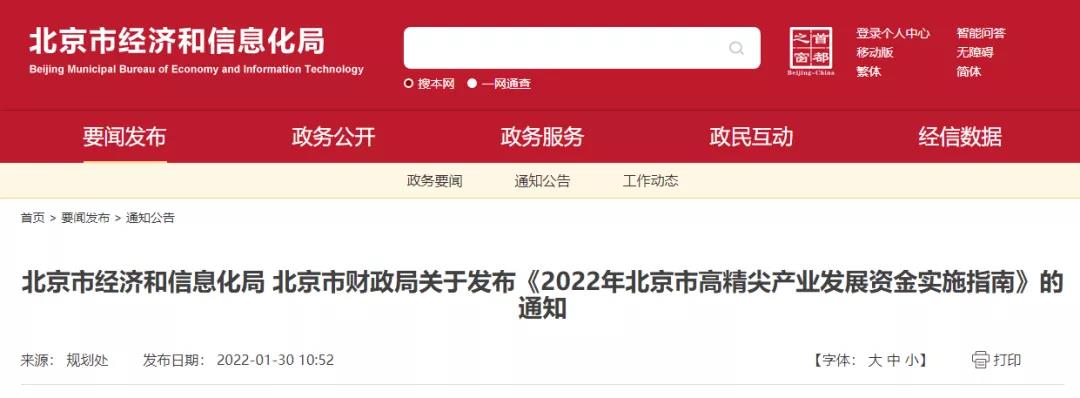 近日,北京市經(jīng)濟和信息化局發(fā)布《2022年北京市高精尖產(chǎn)業(yè)發(fā)展資金實施指南》。